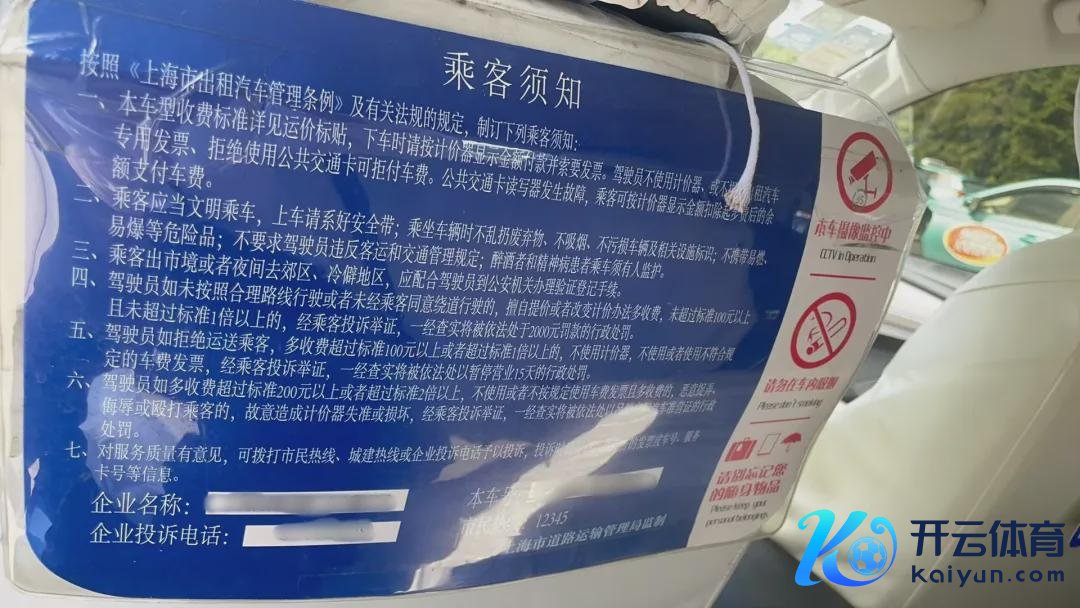 出租车内张贴的《乘客应知》