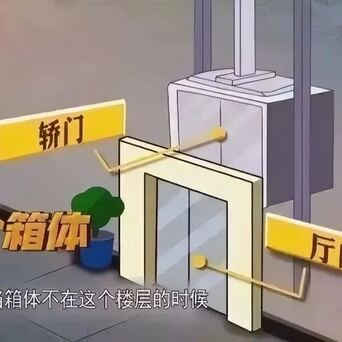 若电梯停驻,门未大开,一定不要鼎力地撞击,厅门和轿门之间在电梯没达到时是空的,淌若使劲去顶嘴,可能奏凯会发生图中情况。